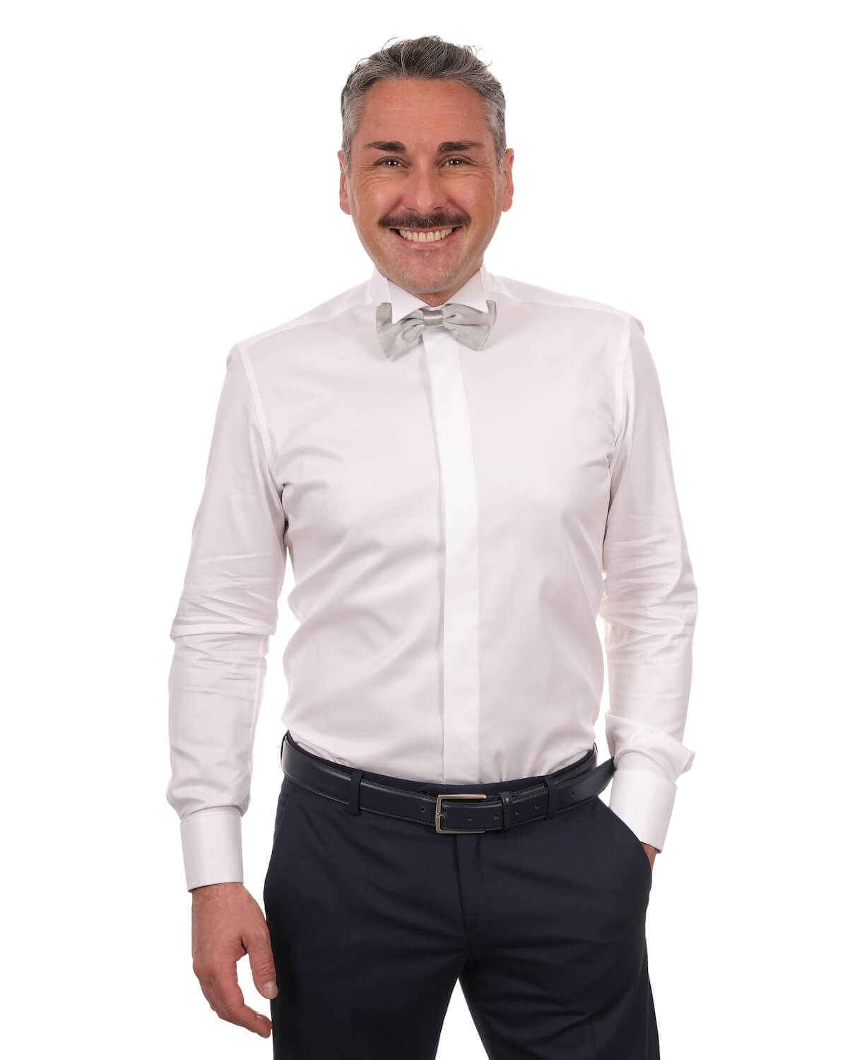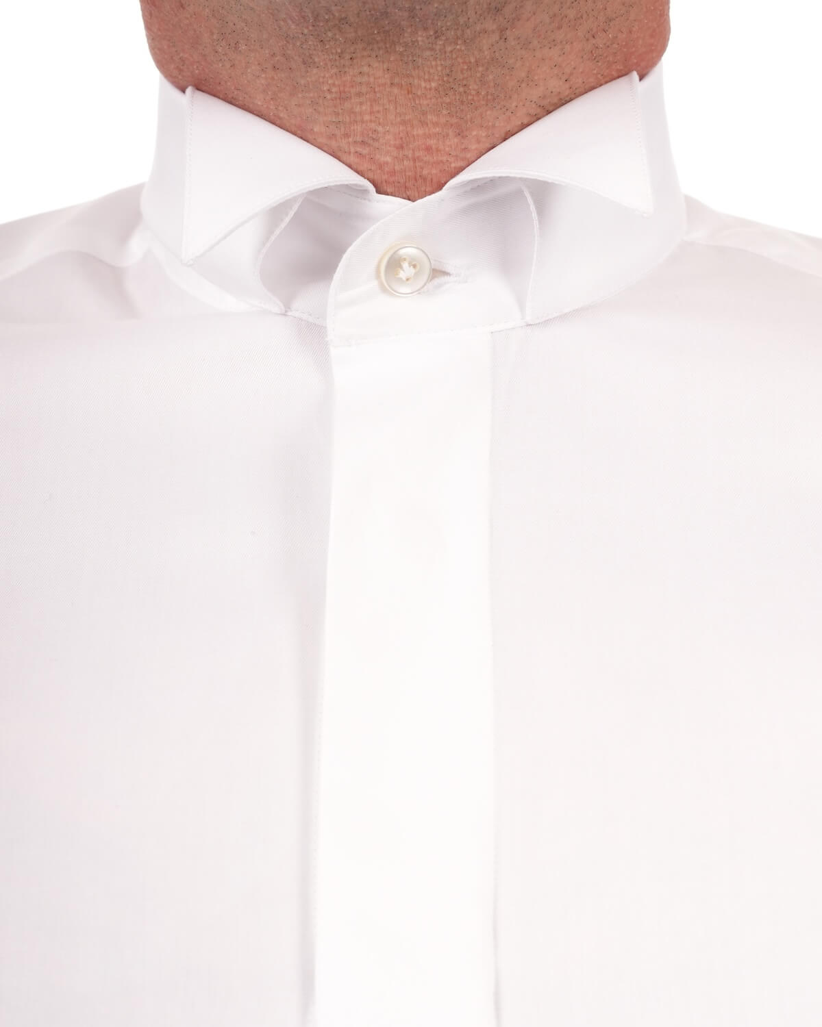 Il collo diplomatico definisce il carattere più esclusivo del capo. Dotato di stecche estraibili, è progettato esclusivamente per l’utilizzo con papillon: non è pensato né per la cravatta né per essere indossato aperto. Questa scelta stilistica lo rende il collo per eccellenza delle occasioni più solenni e codificate, dove l’eleganza segue regole precise e senza compromessi.