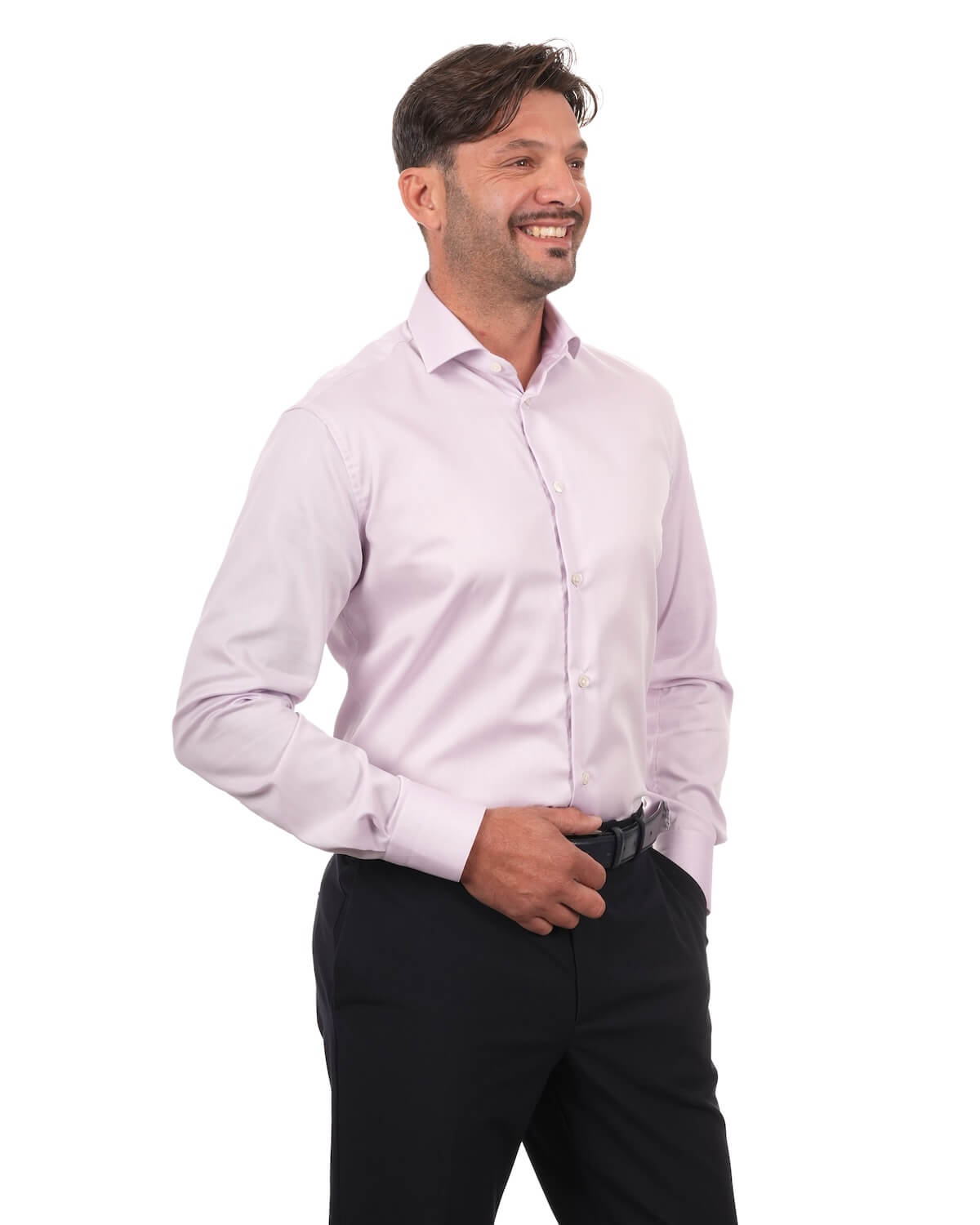 Il colore lilla, delicato e contemporaneo, conferisce personalità al look senza risultare eccessivo, rendendo questa camicia versatile e moderna.