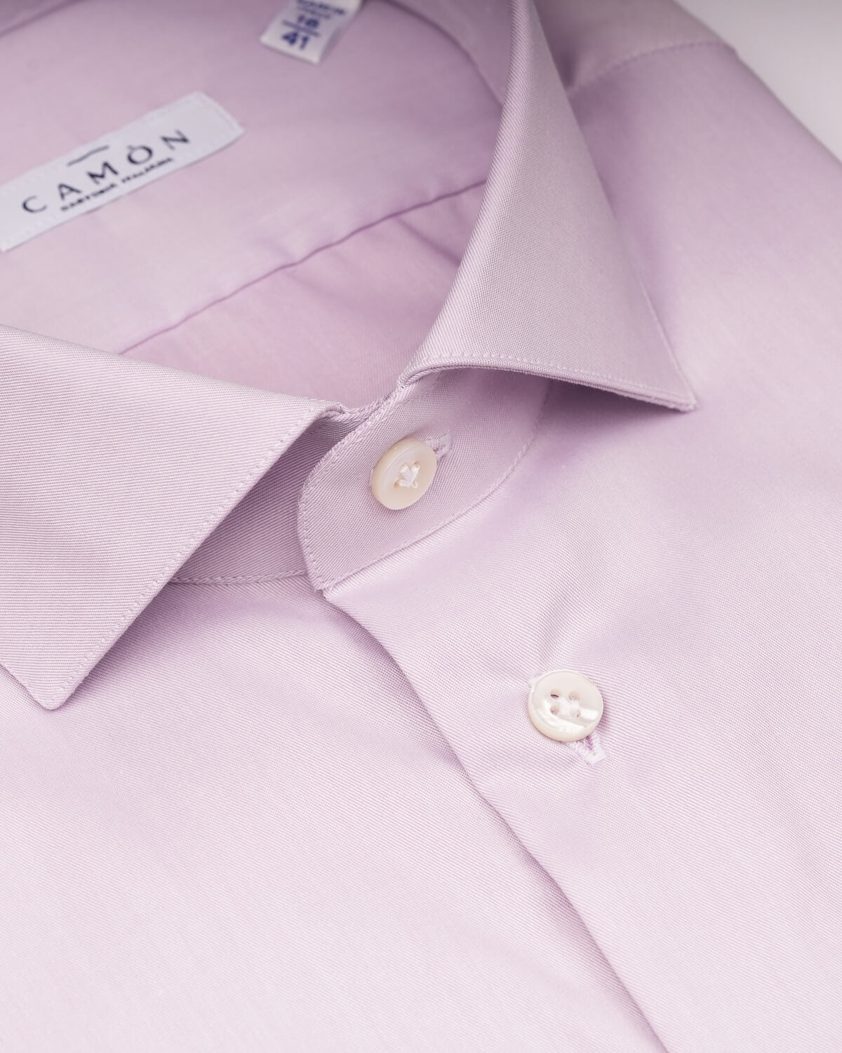 Il collo francese, dotato di stecche estraibili, può essere indossato sia con cravatta o papillon che senza, adattandosi con naturalezza a diversi momenti della giornata. Le cuciture a riva e i bottoni in madreperla completano il capo, valorizzando la qualità della confezione sartoriale CAMÒN.