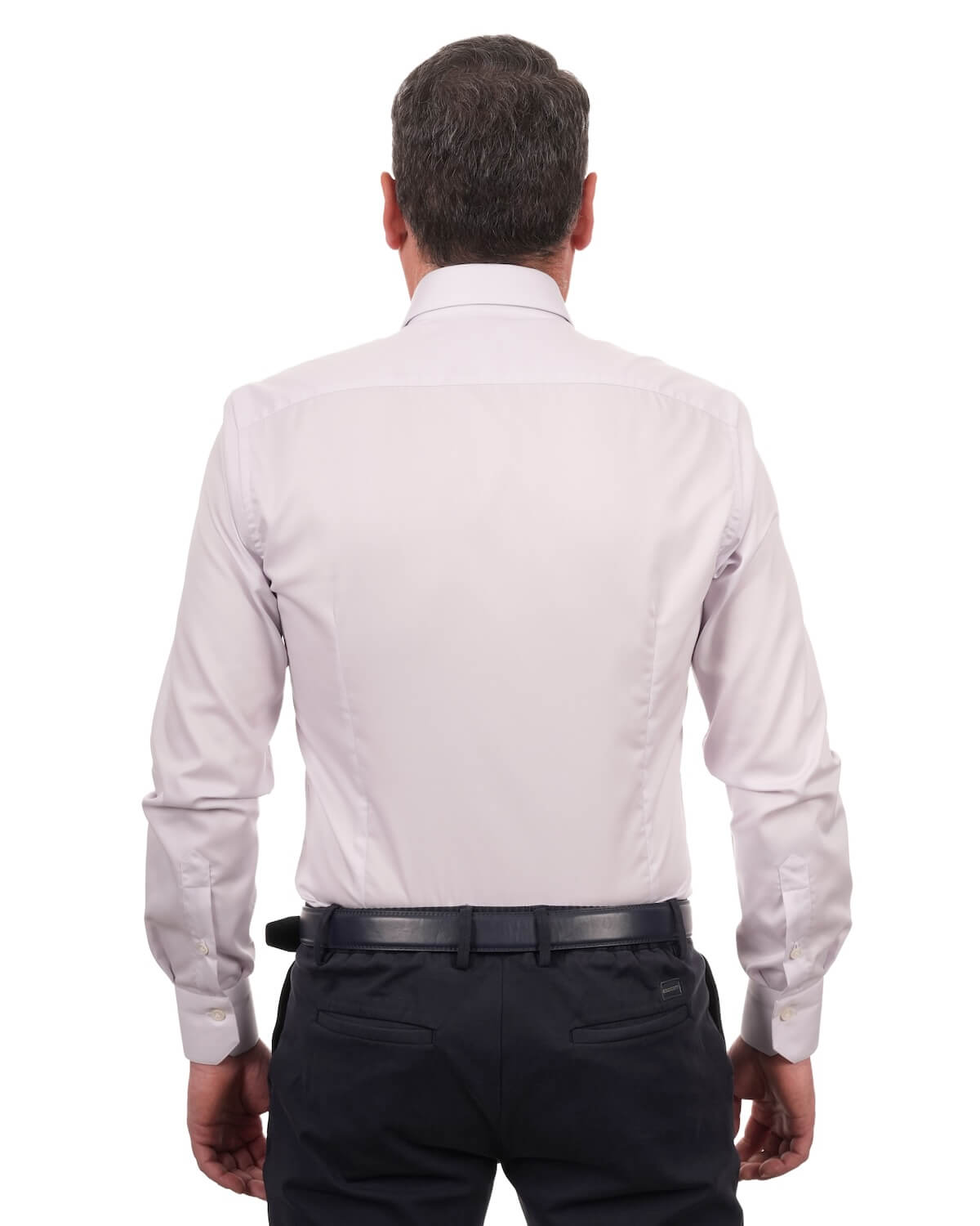 La lavorazione no stiro consente alla camicia di mantenere un aspetto ordinato nel tempo e di essere indossata direttamente dopo il lavaggio senza necessità di stiratura, unendo praticità e cura dell’immagine.