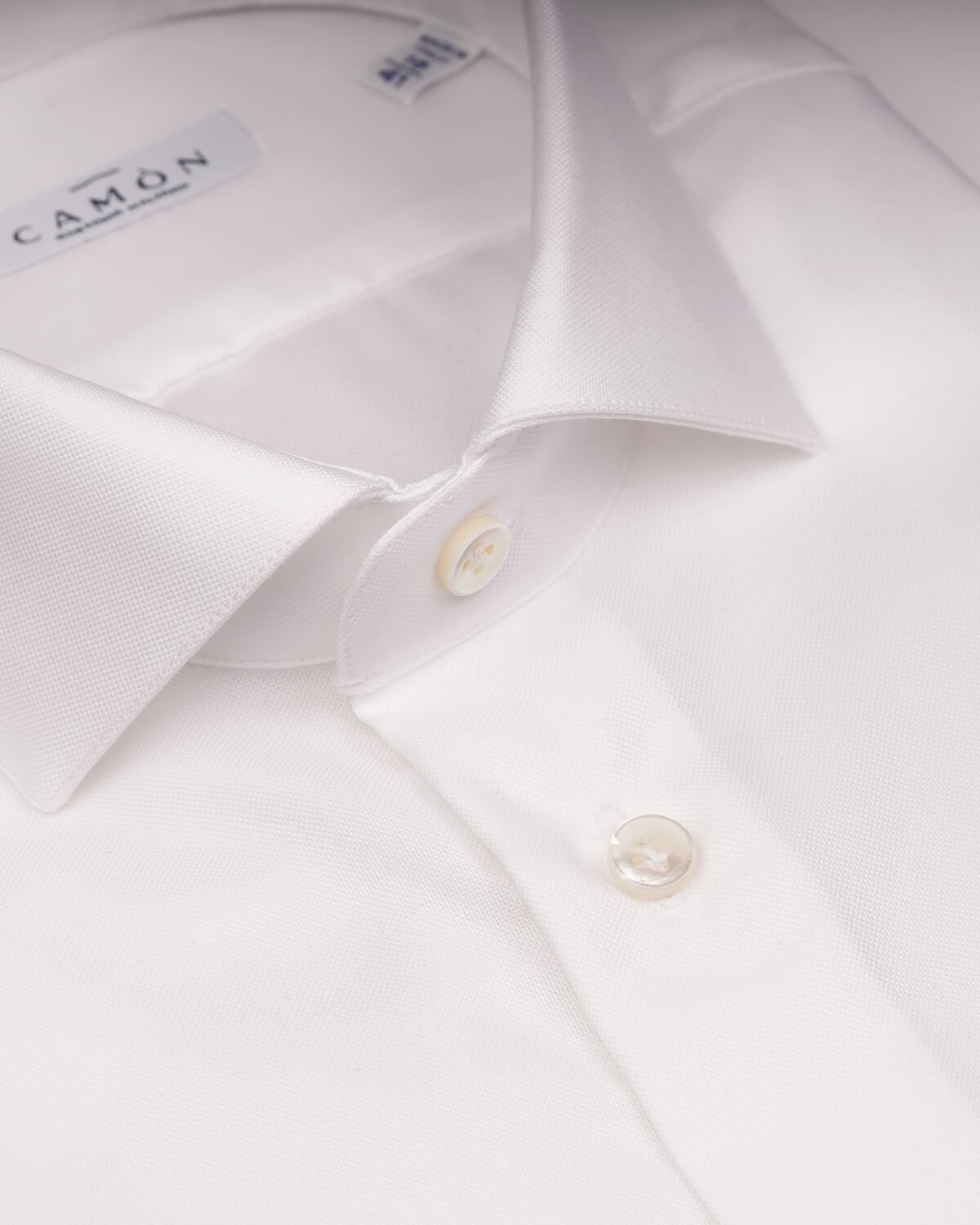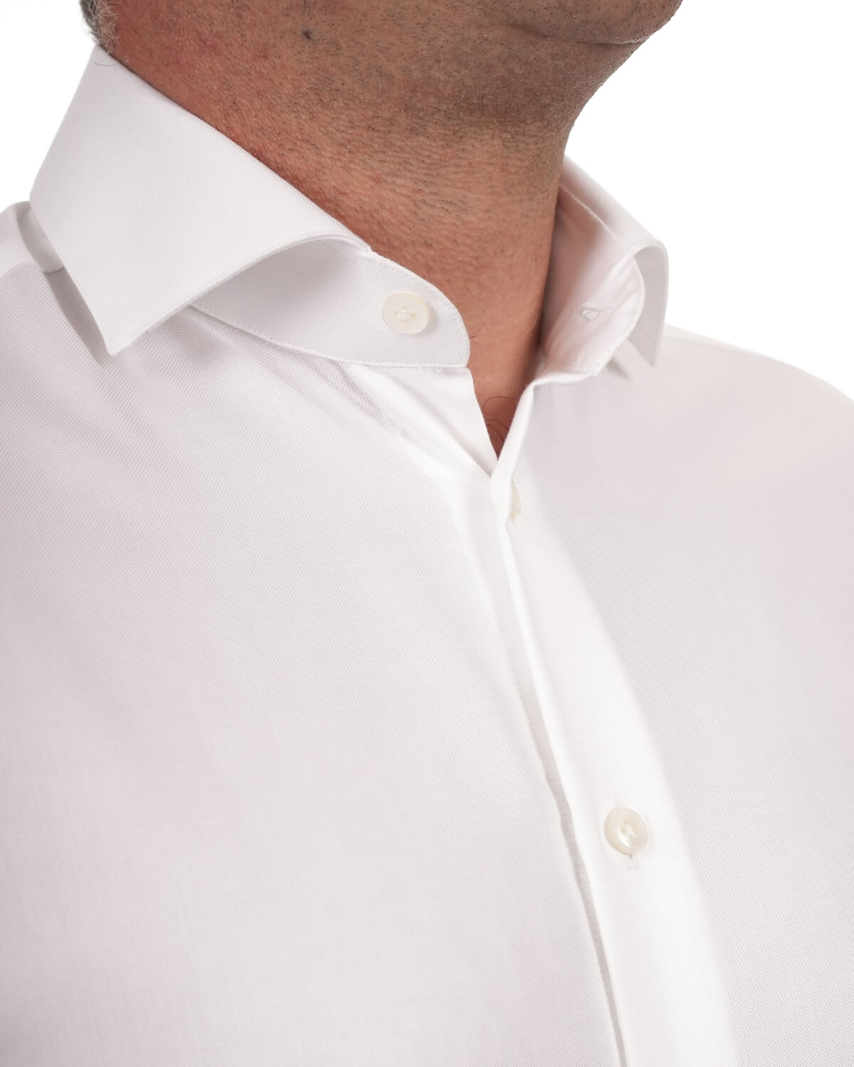 Camicia uomo bianca in Oxford 100% cotone no stiro, 195 g, finitura compact. Collo francese con stecche estraibili, polso spinzato. Ideale per cerimonia ed eventi.